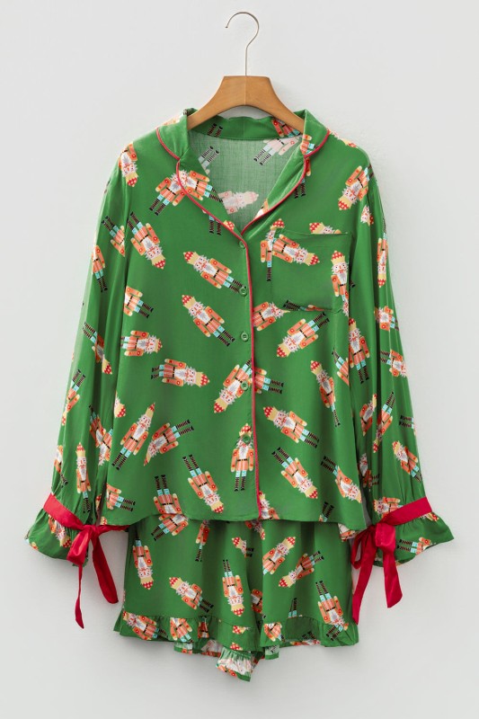 Christmas Bow Top and Ruffle Shorts Pajama Set